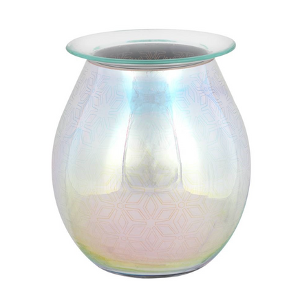 This vibrant Geometric Flower Light-up Electric Oil Burner illuminates to highlight an intricate geometric design and works with scented fragrance oils and wax melts.